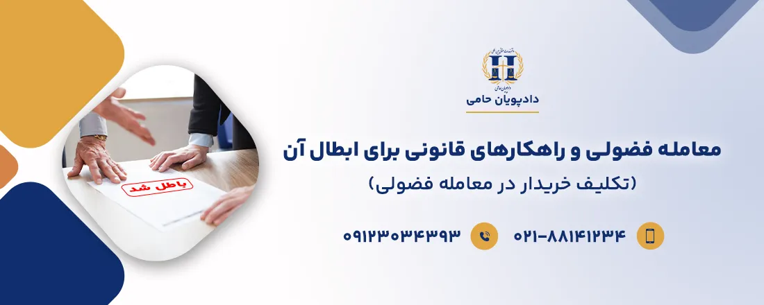 ابطال معامله فضولی توسط خریدار که از فضولی بودن اطلاع نداشته امکان پذیر است. خریدار می تواند علاوه بر طرح شکایت کیفری انتقال مال غیر، اقدام به ابطال معامله فضولی از طریق دادگاه های حقوقی و استرداد ثمن معامله و خسارات وارده را علیه فروشنده مطرح نماید.